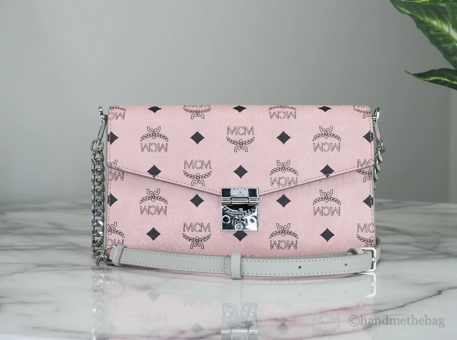Style: MCM Medium Signature Diamond Logo Clutch Crossbody Bag